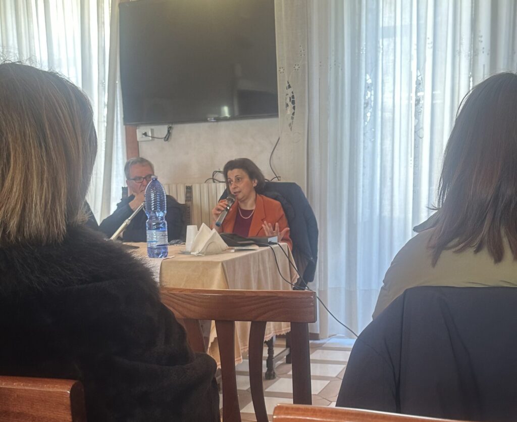 Comincia la prof, collocando la Gaudium et Spes alla base delle questioni connesse ai concetti di famiglia umana, bene comune ed etica delle relazioni internazionali. “L’obiettivo della pace si situa in questo ambito, e – precisa Maria Luisa Sergio – non è la stessa pace di Alessandro Orsini…”