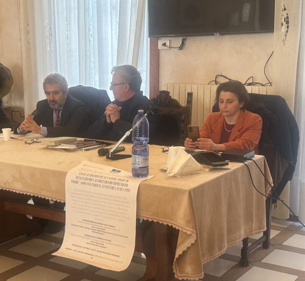 “Cattolici in politica? Quel diario inedito di Amintore Fanfani…”È un tema molto ben definito – e attuale, ça va sans dire – quello attorno al quale l’Associazione Alexandra, d’intesa col Club per l’Unesco di Tropea e la rivista Parva Favilla, ha proposto una riflessione. Per fissarlo, viene scelto un concetto espresso già nel 1991 nella Centesimus Annus da san Giovanni Paolo II: “Esiste il rischio che le antiche forme di totalitarismo e autoritarismo riprendano vigore”. E per spiegarlo, nel sottotitolo si argomenta: “All’indomani degli avvenimenti del 1989 quando tutti pensavano che la storia si fosse staccata definitivamente dagli orrori dei conflitti e genocidi del ‘900, Giovanni Paolo II deplorò gli ingenui entusiasmi sorti dopo la riconquista della libertà dei Paesi dell’Europa centrale e orientale. Quella triste profezia si è avverata e ciò interpella la Chiesa e le democrazie a reagire”.